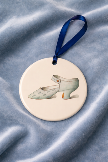 Three pairs of shoes featured in the Last & Slipper collection were memorialized by artist T.W. Grieg in part because they were worn on stage by actress Ada Cavendish (1847-1895). Although she performed mainly in the United Kingdom, in 1878 she opened on boardway including her role as Lady Teazle, where she wore the fabulous eau-de-nil pumps we offer in Last & Slipper.